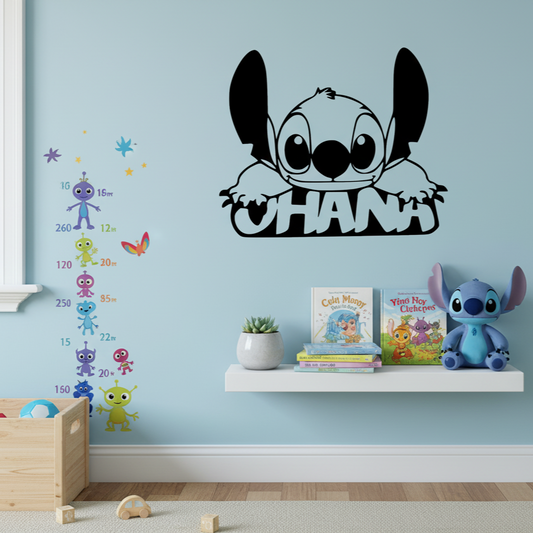 Decoración de pared de madera Stitch Ohana. Disponible en 20, 30 y 40 cm
