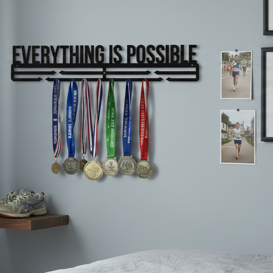Medallero de madera negro "Everything is possible" – Soporte para medallas de running