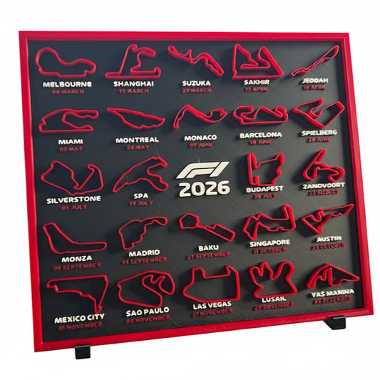 Calendario Fórmula 1 2026 Impreso en 3D – Circuitos del Mundial F1 (22x25 cm)