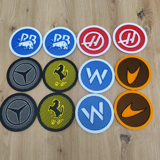 Posavasos F1 impresos en 3D con logos de escuderías – Red Bull, Mercedes, Ferrari, Haas, Williams y más