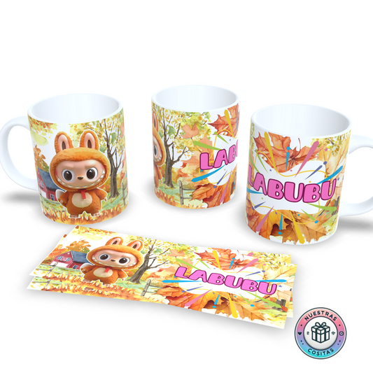 Taza Labubu con disfraz de ardilla - Diseño de otoño