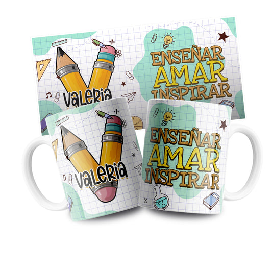Taza personalizada “Enseñar, amar, inspirar” – Regalo para maestras y maestros