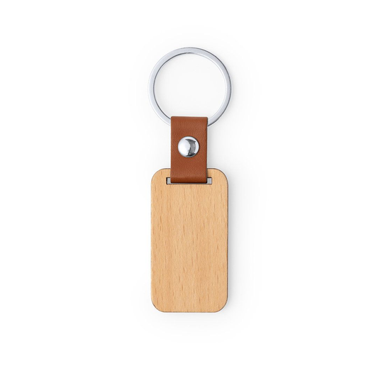 Llavero Madera Premium con Detalle Polipiel - Grabado Láser Personalizado