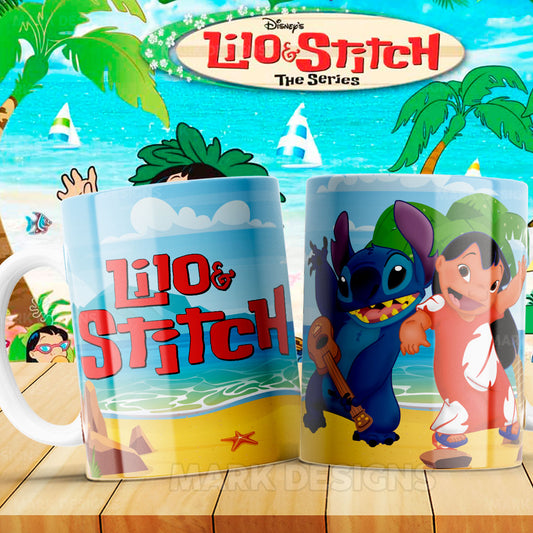Taza Lilo & Stitch en la playa – Ukelele y amistad tropical
