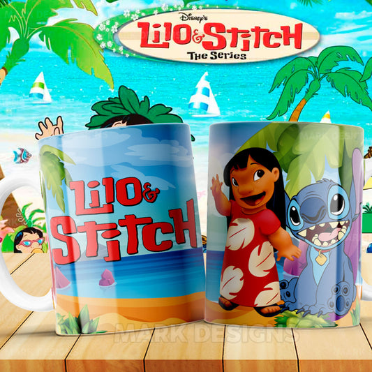 Taza Lilo & Stitch – Diseño playero con palmeras y mar
