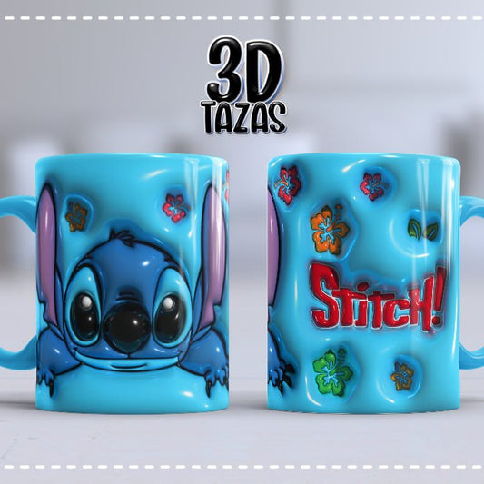Taza 3D Stitch Flores Hawaianas