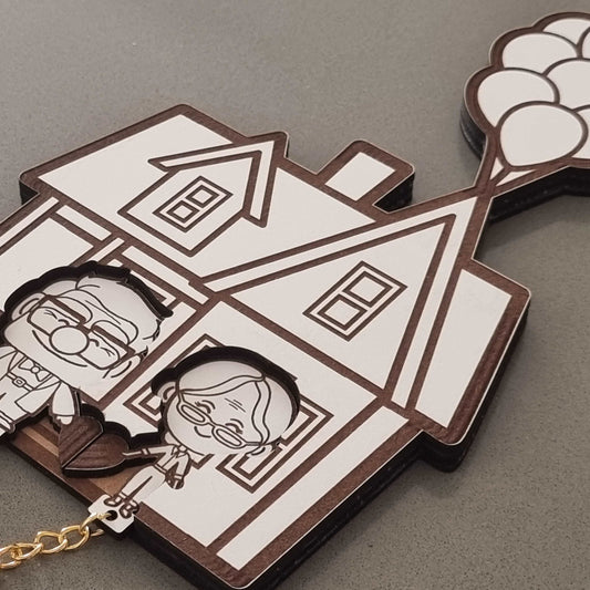 Cuelga llaves UP. Llaveros Carl y Ellie. Hecho en madera, versión blanca.