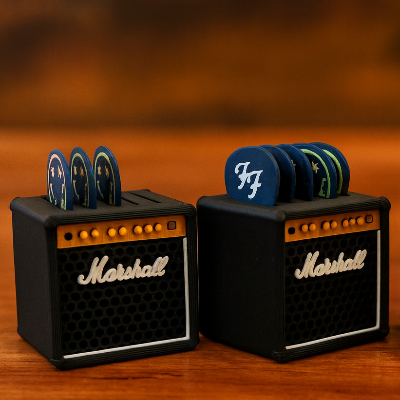 Mini amplificador porta púas de guitarra 🎸 | Organizador original para picks (Marshall, Fender, Gibson y Orange).