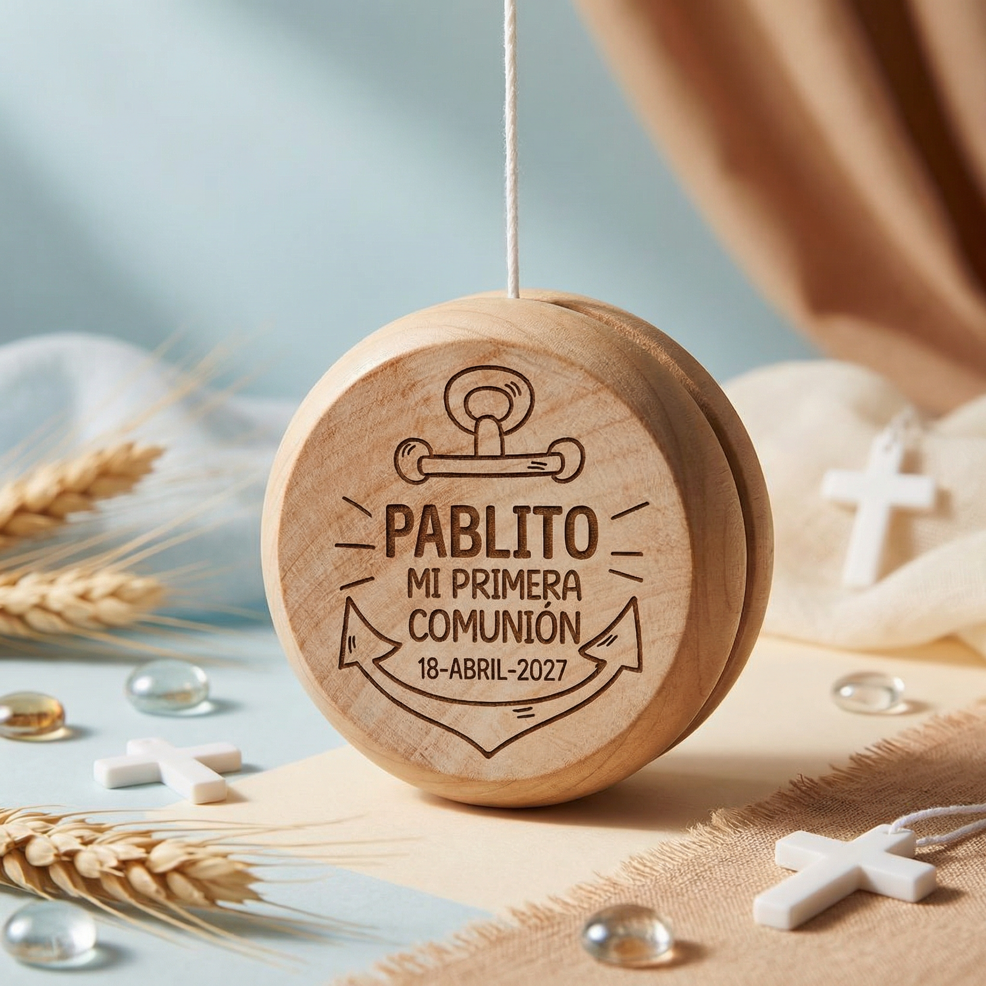 Yoyó de Madera Personalizado "Diseño Ancla" – Recuerdo Primera Comunión